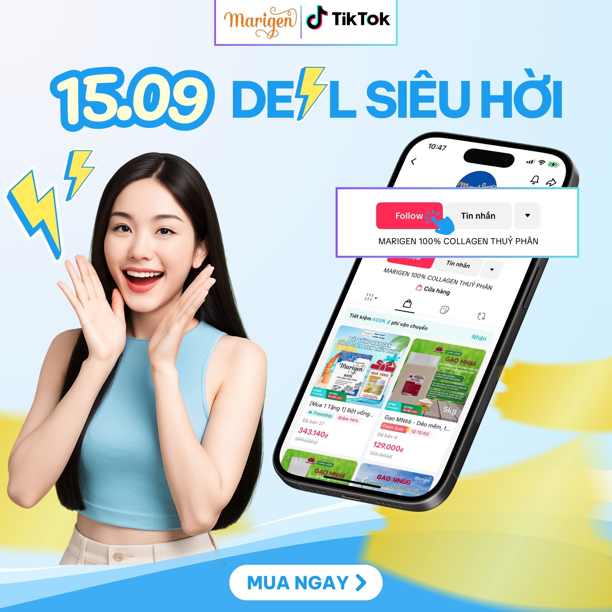 Đến hẹn lại lên, các nàng nhà Marigen ơi, nhanh tay săn SALE ngày siêu hội mua sắm 15.9 tại gian hàng TiktokShop chính hãng nhà Marigen ngay nhé!!!