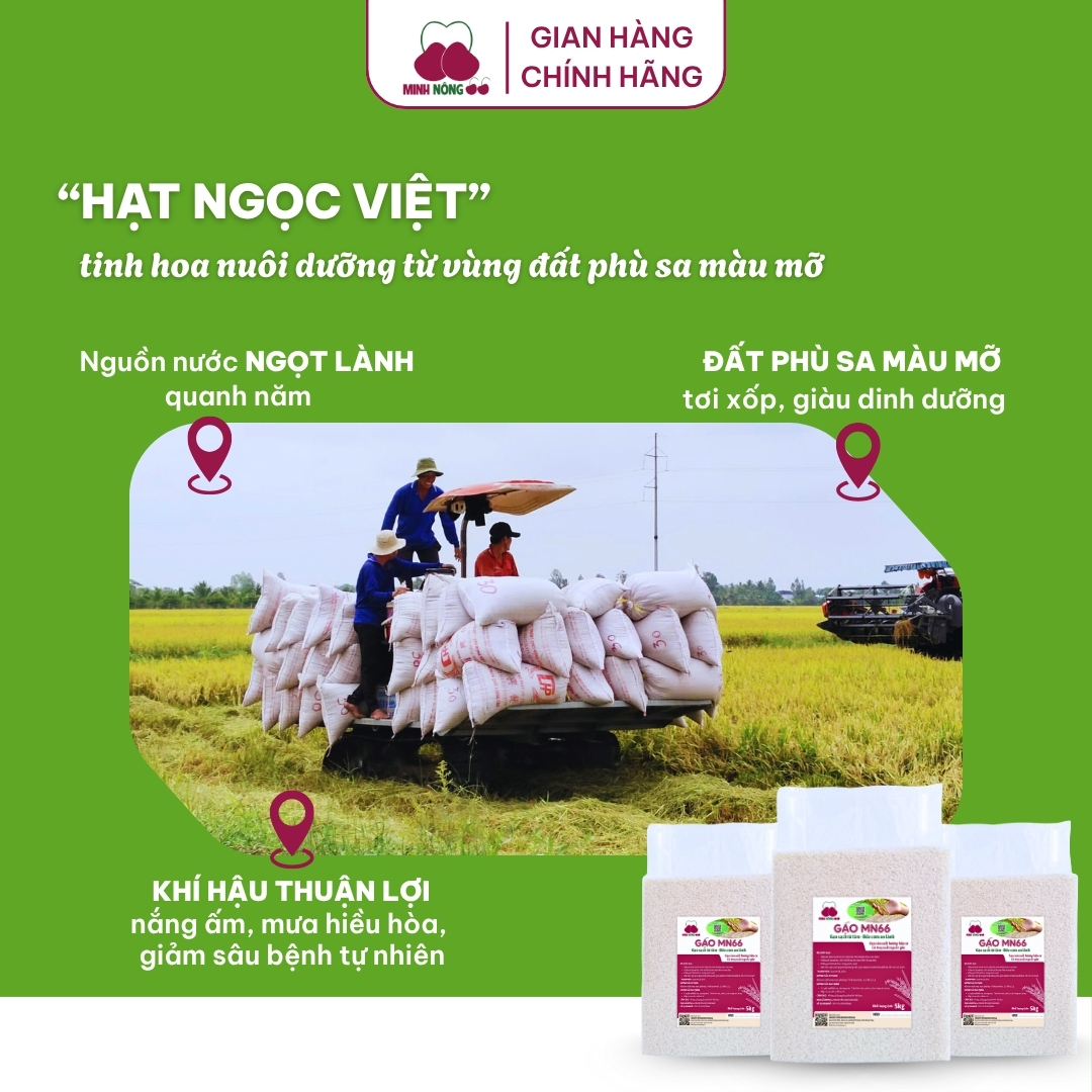 Gạo MN66 ra đời từ chính những cánh đồng ấy – hạt gạo còn giữ nguyên lớp vỏ cám - như giữ lại phần tinh túy nhất của đất trời. Không cần mùi thơm nhân tạo, không cần lớp bóng hóa chất, gạo chỉ cần nấu lên là đã thơm dịu, dẻo mềm và đầy đặn vị ngọt tự nhiên của đất trời – một hương vị chân thật, gần gũi như chính quê nhà.
