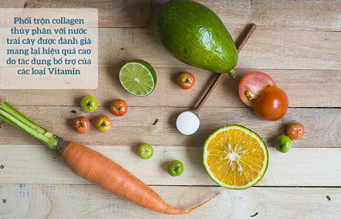 - Trong dinh dưỡng, collagen thủy phân được đưa vào nhiều dạng, từ những dạng truyền thống như viên uống đến những dạng mới như thực phẩm tăng cường collagen. Có thể kể ra như bột xay đến súp, mì ăn liền, các sản phẩm khác như yogurt, thức uống có vị chua, kẹo nhai, bánh snack hay thực phẩm có mùi thơm khác. Tại Bắc Mỹ, những thanh kẹo dinh dưỡng là sản phẩm hàng đầu trong việc bổ sung collage cho cơ thể. Collagen thủy phân được bổ sung vào những thanh kẹo giàu protein, thêm vào các thành phần khác như sữa và protein thực vật, mỗi thành phần đều góp phần tạo nên độ hấp dẫn của sản phẩm. Vì là protein tinh khiết, nên collagen có thể giúp tăng mật độ protein trong sản phẩm lên đến 55-60%. Thức uống cũng là một trong những sản phẩm phổ biến khác, đặc biệt tại thị trường các nước Á châu. Thức uống pha bằng bột bổ sung collagen cũng được tiếp cận thị trường từ nhiều thập niên trước. Phân khúc đang có tính tăng trưởng cao chắc là những dòng sản phẩm thưc uống làm sẵn. Đây là kết quả của một cuộc cạnh tranh khốc liệt và không ngừng hoàn thiện với collagen thủy phân với những mùi vị và mùi thơm khác nhau. collagen hiện nay không hề có ảnh hưởng gì đến màu sắc, hương vị của thức uống. Nếu bạn sử dụng collagen thủy phân trong các sản phẩm thức uống bột, thì hiệu quả hướng tới là cung cấp các acid amin cho xương và khớp, và phần quan trọng của thị trường được phát triển dựa trên ngành thẩm mỹ hiện nay. Những loại thức uống như thế thường sẽ được gọi là “thức uống làm đẹp” hay “thức uống thẩm mỹ” sẽ được nhắm đến lợi ích cho da của người sử dụng