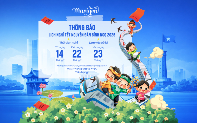 🧧Khi những ngày cuối năm dần khép lại, hòa trong không khí hân hoan chào đón Xuân Bính Ngọ, MARIGEN xin trân trọng thông báo đến Quý Đối tác, Quý Khách hàng và Toàn thể nhân viên lịch nghỉ Tết Nguyên Đán 2026 như sau: